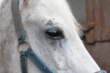 Diese schöne Shagya Stute hatte sich am Auge sehr schwer verletzt. Es war stark entzündet, voller Eiter und sicherlich sehr schmerzhaft für das Pferd.